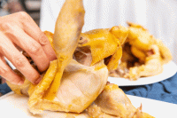 最高境界的吊烧鸡,轻轻一撕,整只鸡便“骨肉分离”。