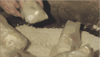 包好了鸡,此时的窑已经烧的滚烫,瓦片上泛白时扑灭柴火,然后将鸡放进窑中,随即弄塌窑。