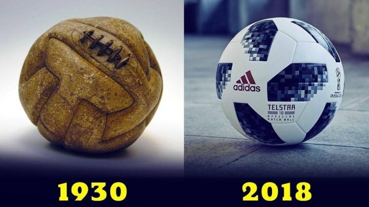 早期的足球便是下图左侧的样子,由11片T型皮革缝制而成,也因此很形象地被称为“T”型足球。到了21世纪,足球无论在外观还是技术层面玩出了越来越多的花样,2018年世界杯用球“电视之星”甚至引入了在足球中放置芯片的技术。