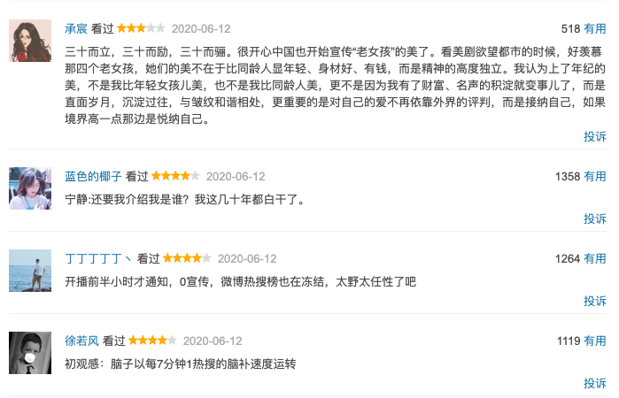 在任何为年龄所困,为年龄焦虑的人看来,这档节目是对「媚青文化」的反击,是对一些社会固有观念的抨击和抗议。人 20 岁的精彩和 50 岁是不一样的,无论如何你都可以活出更精彩的自己。