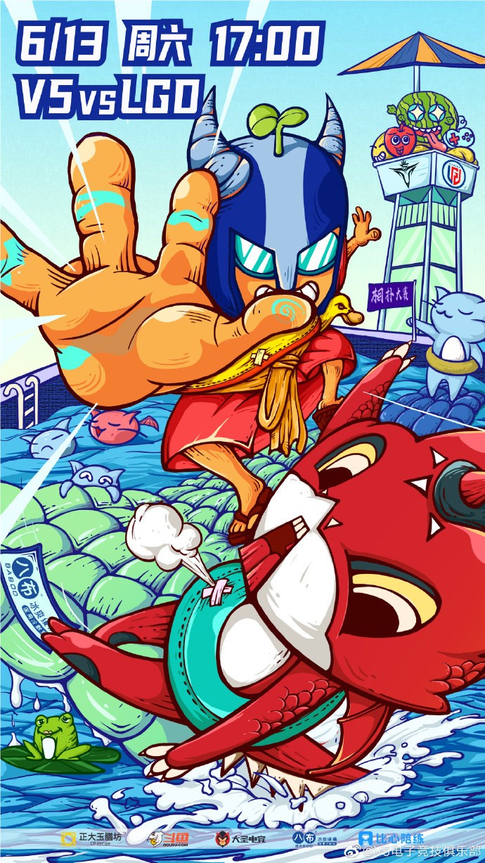 V5:夏日限定记忆Ver.3 —— 泳池大乱斗。V5战队在春季赛中排名垫底,但在夏季赛开赛以来取得了两连胜,先后战胜了DMO和OMG,力压群雄领跑积分榜。本场对战LGD的比赛,观众们也期待V5能否突破自我再创佳绩。