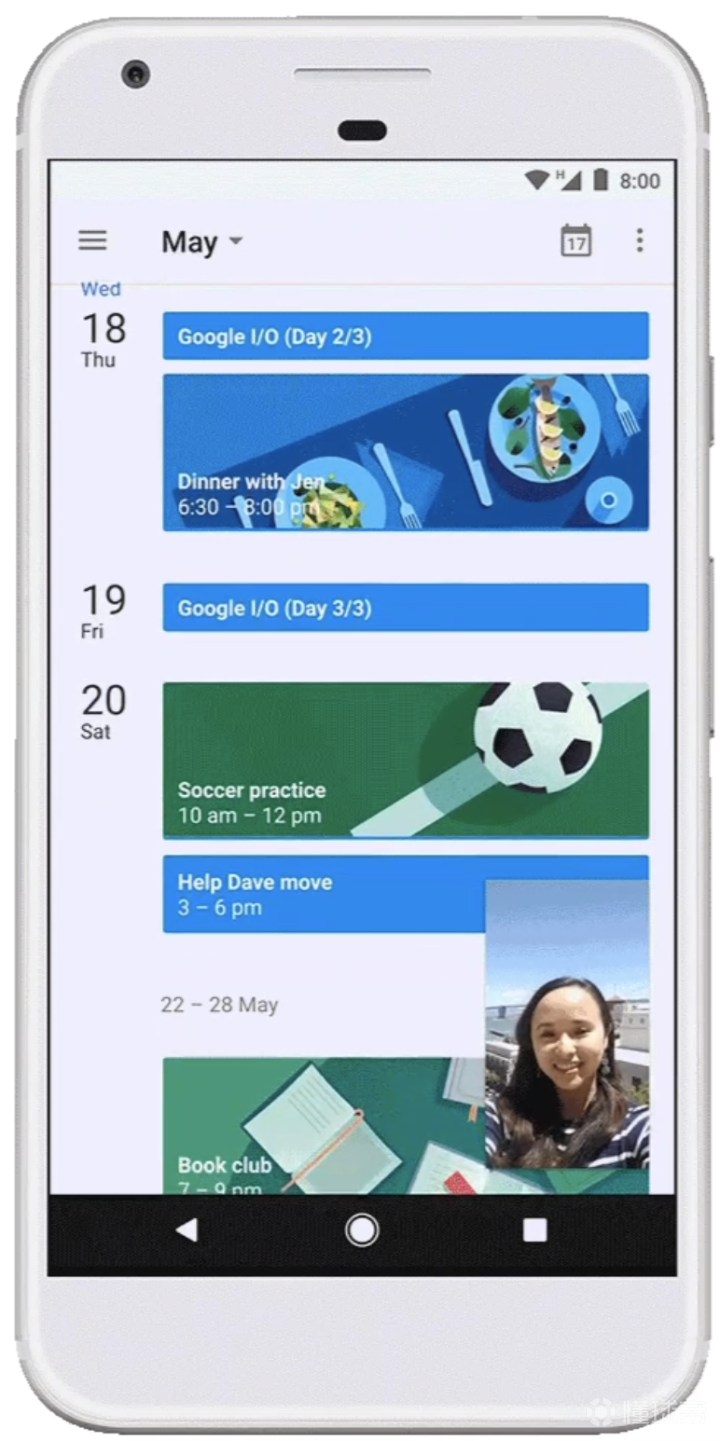 画中画模式则是针对更具体的场景,提出了同屏后台播放的概念。一些直播、视频应用能以小窗的模式持续播放,用户可以同时浏览其它应用,这时候的同屏多应用,已经有了主次的概念。并且你只要把相关应用的小窗播放功能开启,它退出到后台时就会自动缩到角落播放,对用户来说不需要主动去触发,学习成本较低。