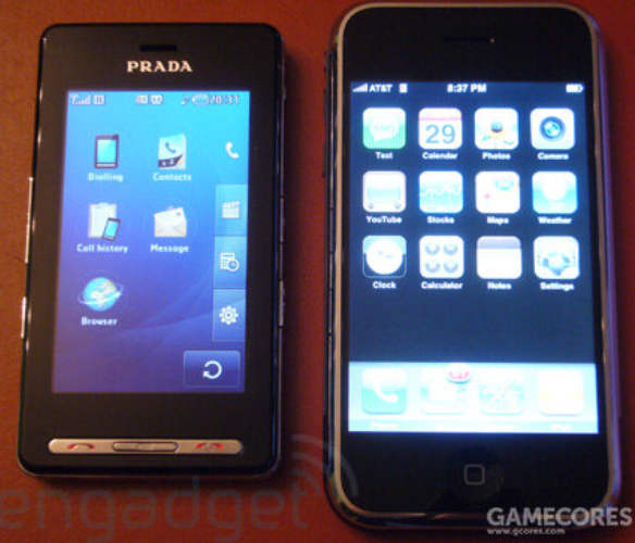 唯一看起来有点希望的LG Prada(有人觉得iPhone抄袭了它)是这样的: