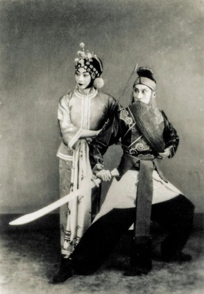 梅兰芳(1894—1961),梅先生1935年为访苏拍摄的系列剧照,梅先生在《打渔杀家》饰萧桂英、王少亭饰萧恩。图源:上海京剧院微博。