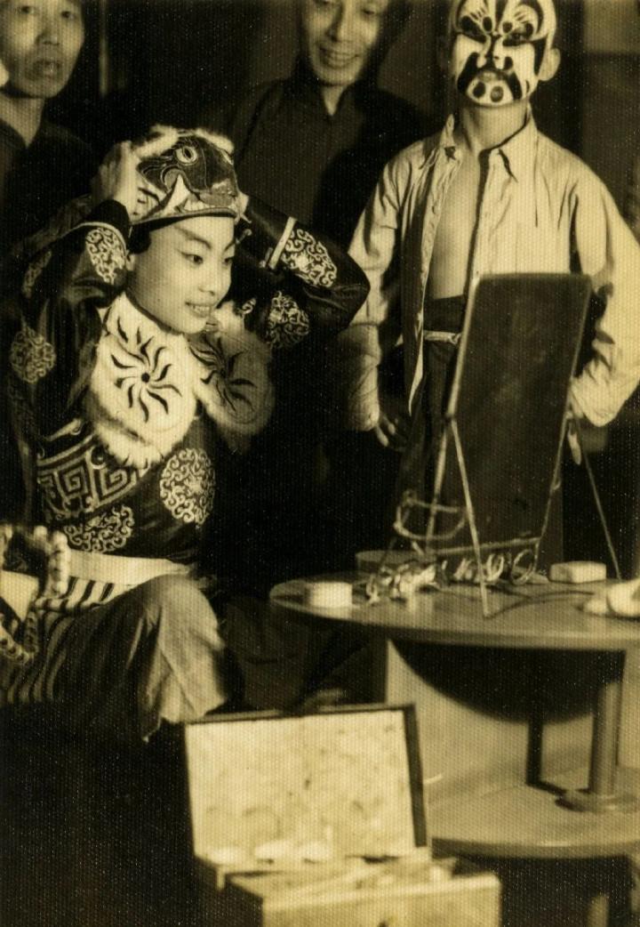 上世纪四十年代,小王桂卿《雅观楼》后台扮戏。图源:上海京剧院微博。