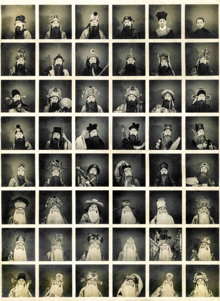 库房里林立着一排排高大的密集柜,抽湿机嗡嗡地运转。虞凯伊走进狭窄的通道,打开柜子,熟悉的旧照片霉纸味扑面而来。他戴着塑胶手套,小心翼翼地把照片和袋子分离开,取出一张张拍摄于他出生前五六十年的黑白京剧老照片。