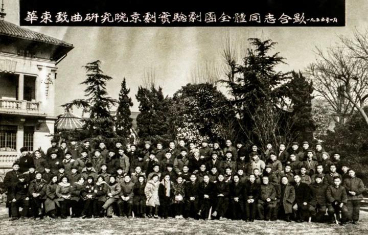1955年1月,华东戏曲研究院京剧实验剧团全体同志合影。受访者供图。
