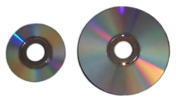 左为 GameCube 迷你光盘,右为标准大小光盘