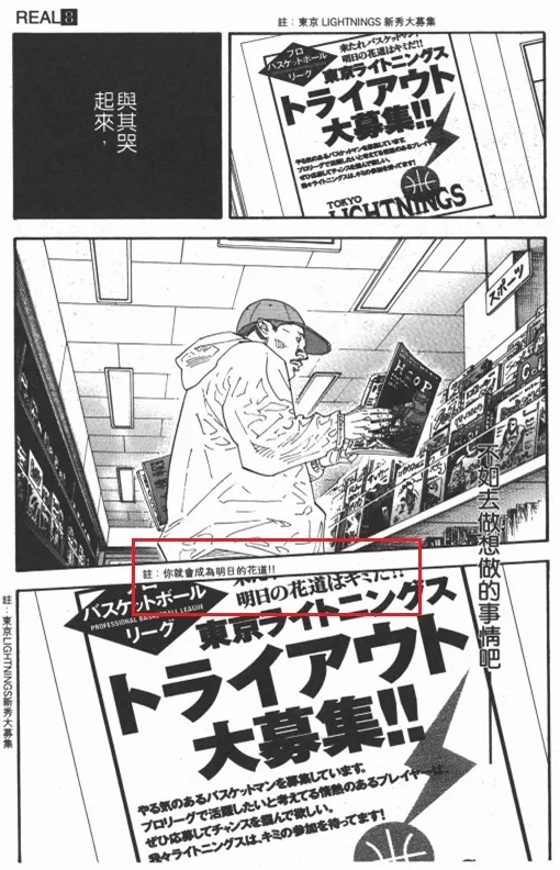 如果说《灌篮高手》的主题是燃烧青春,在热血中追逐梦想,是篮球梦阳光的一面;那《Real》的主题则是众生皆苦,在挣扎中求生存,是篮球梦残酷的一面。