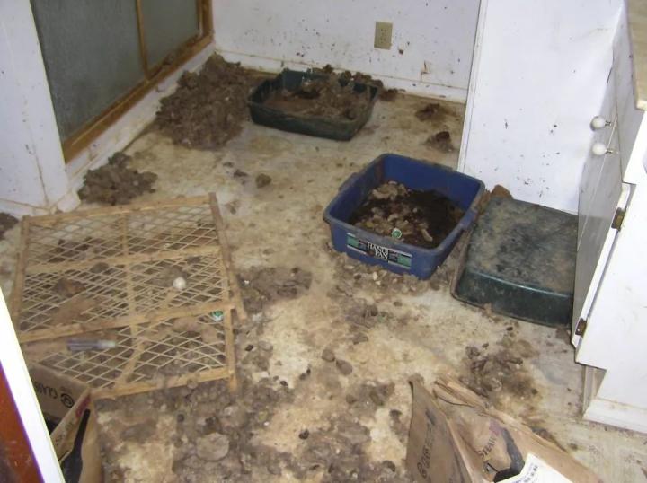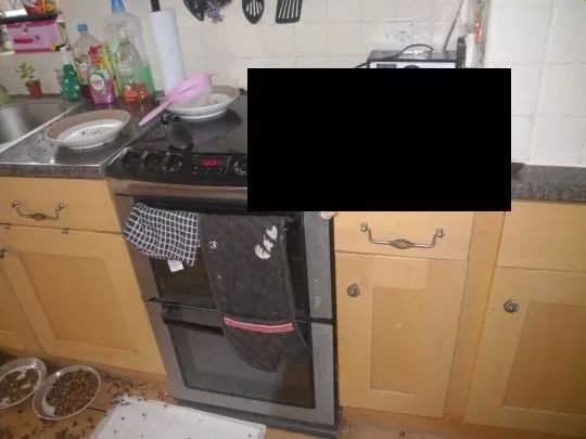检察官安德鲁·怀尔斯说:“我们在屋内发现一只死猫躺在灶具上。在厨房的另一处总共有8个碗和平底锅,里面只有少量的水或食物。”