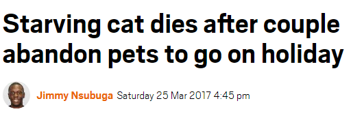 一对夫妇抛弃宠物去度假,饿死了一只猫