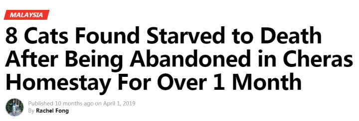 8只猫被遗弃在Cheras民宿一个多月后饿死