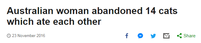 一名澳大利亚妇女遗弃了14只猫,它们互相捕食