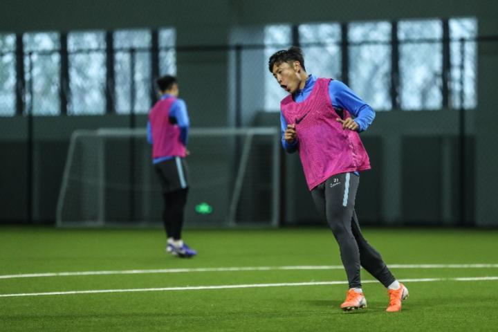 ▲大连人队的郑龙身着官方装备在训练备战中。新华社发