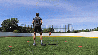 第二个训练有方向的触球,这次我们放置了两个三角形,距离与第一个练习中放置正方形的距离相同。这一次我们进行有方向的触球,先接球穿过身体到三角形的一侧,然后再传出。