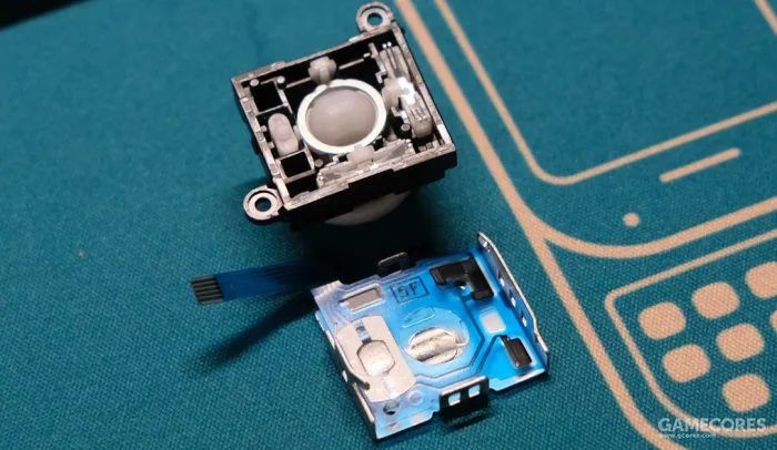 上图是Switch摇杆的完整模块,你可以看到它是一个金属包裹的完整结构。出现问地方是摇杆触点,在模块内部。