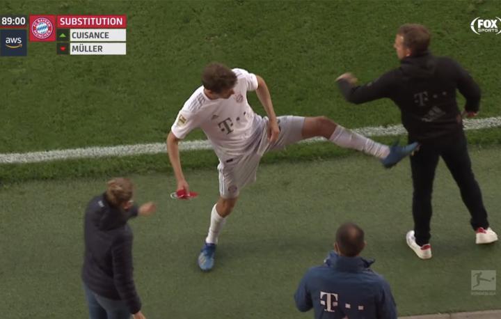 (图)首回合“德国德比”,穆勒回追70米以完成抢断