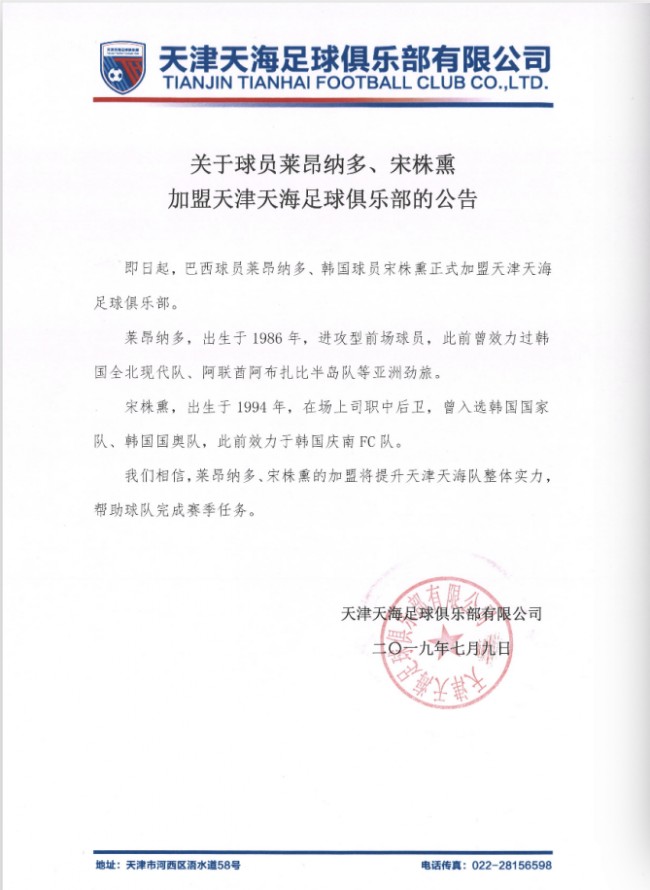 天海解散不久后,巴西前锋莱昂纳多就和中超豪门山东鲁能传出绯闻。最终在7月14日,鲁能官方宣布与莱昂纳多正式完成签约。