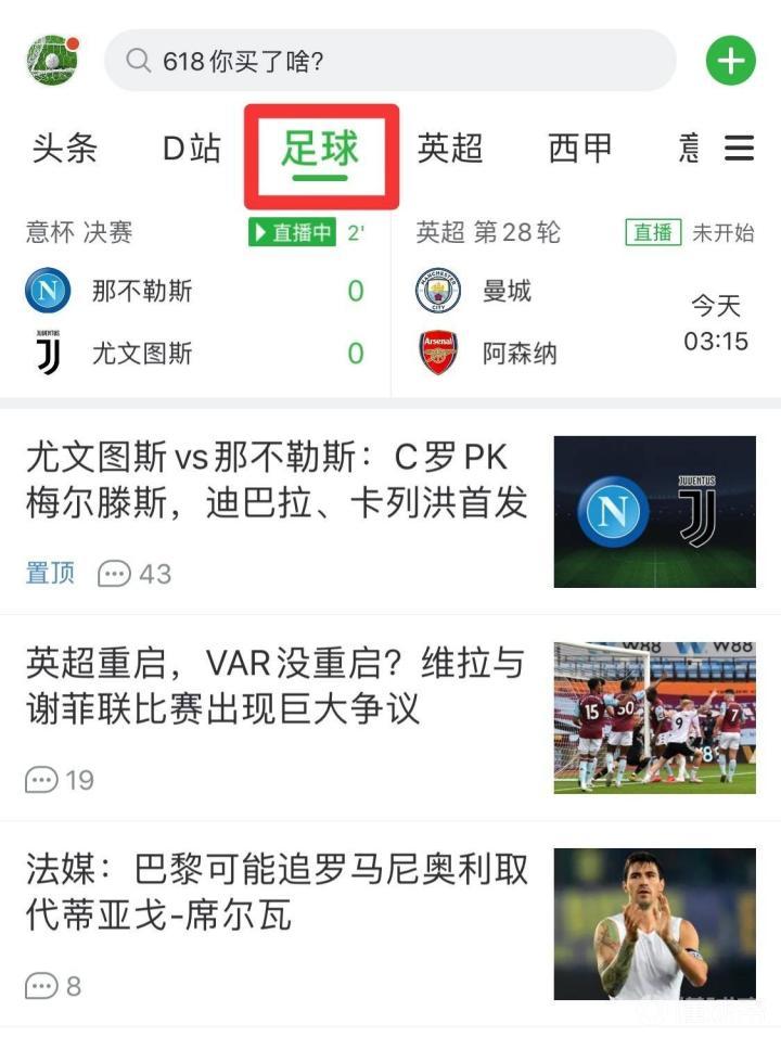 二、我不关心粮食和蔬菜,只看足球,怎么办?“足球”tab,还是熟悉的味道