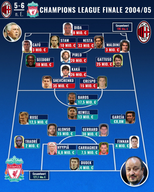 (图)2005年欧冠决赛双方的首发阵容与身价对比