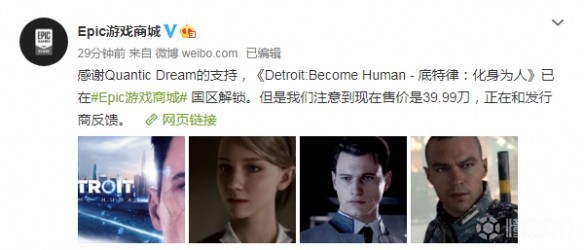 《底特律:变人》Epic国区解锁282元,Epic:正在反馈