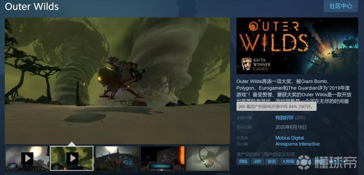 《星际拓荒》是一款开放太空冒险探索游戏,去年被数家媒体评为2019年度游戏、最佳独立游戏。此前它在Epic平台独占,近日它正式登陆了Steam,好评率84%。