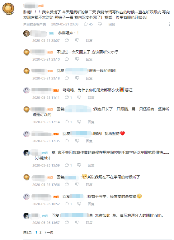 同样厉害的还有自动双眼皮音乐,不知道基于什么医学原理,听完之后第二天眼睛就开始产生变化了,评论区的小集美们直呼握草,纷纷投来羡慕的目光。