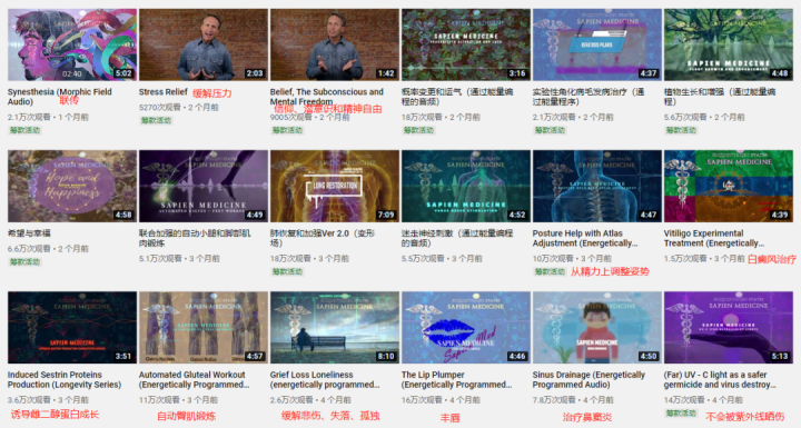 这个 Sapien Medicine 上传的大部分视频也都是一些关于用音乐来治疗的疾病以及精神训练,项目涵盖面很广。