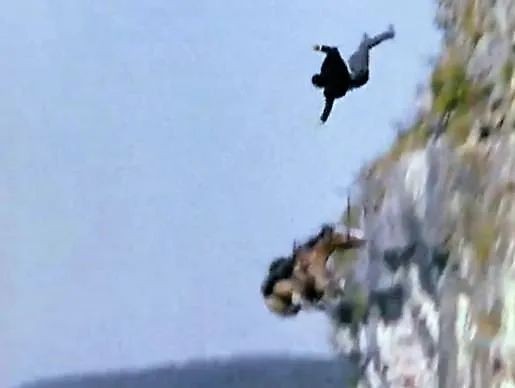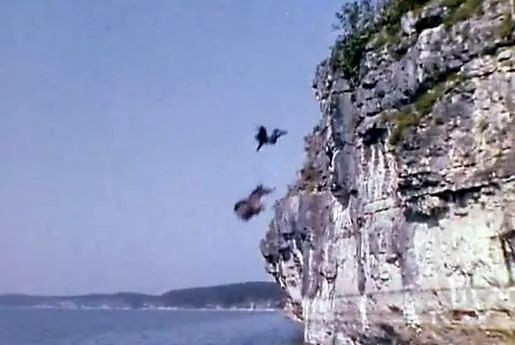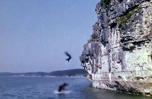 在1939年的西部片《荡寇志》快要结束的一个戏剧性场景中,主角正被人追杀,他们唯一的出路就是骑着马从悬崖上跳入湖中。