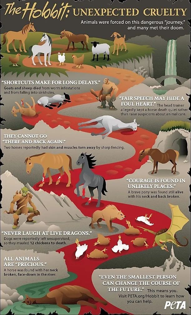 2012年的《霍比特人1:意外之旅》中就死了差不多30只动物。
