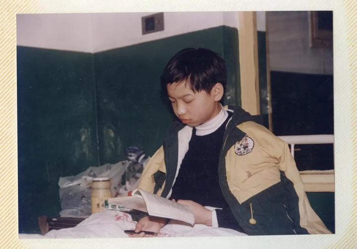 1996年,临近小学毕业,我发烧住院。他给我拍了一张“病中学习赶考”。