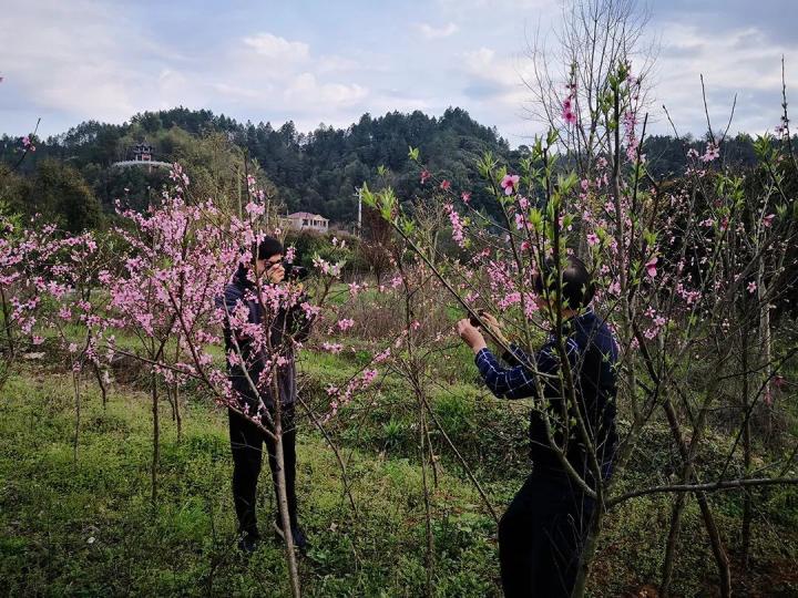 返京前一天,爸爸又拉着我去拍照,非要我和一树桃花合影。我打算铁了心不拍。他突然俏皮一笑:“拍一张嘛,求求你啊!”我也笑了。
