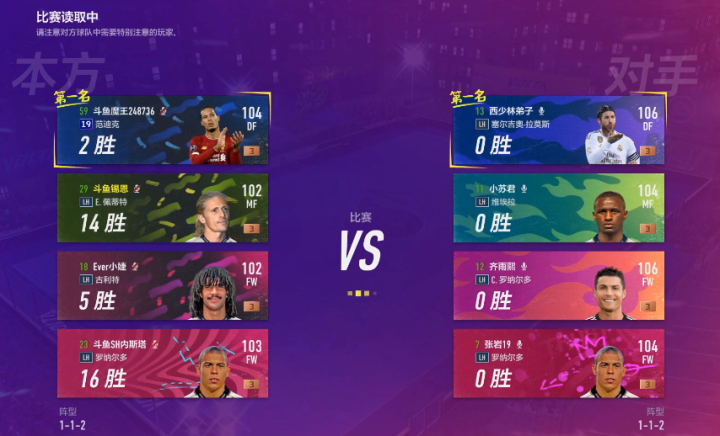 第2场比赛斗鱼主播队阵容为后卫19欧冠赛季范迪克,中场LH赛季佩蒂特,锋线LH赛季古利特、LH赛季罗纳尔多。