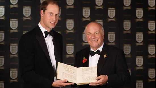 (图)威廉王子接过名誉主席证书