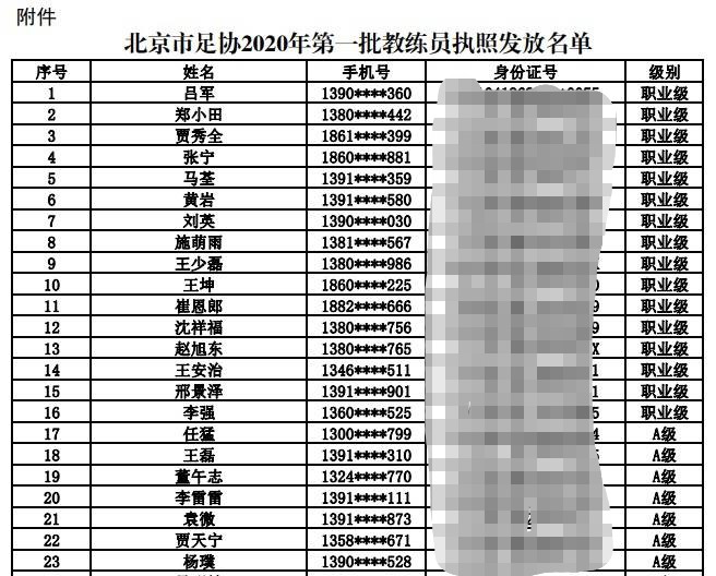 在这份名单中可以看到,贾秀全、沈祥福和赵旭东等16人获得了职业级教练证书。此外,孙继海、李雷雷、杨璞、谢峰等人获得了A级教练证。