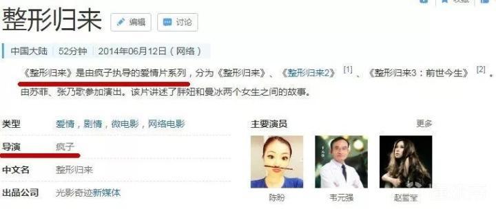 导演在百度百科上的名字被黑粉改成了“疯子”。