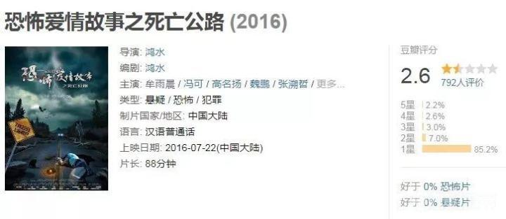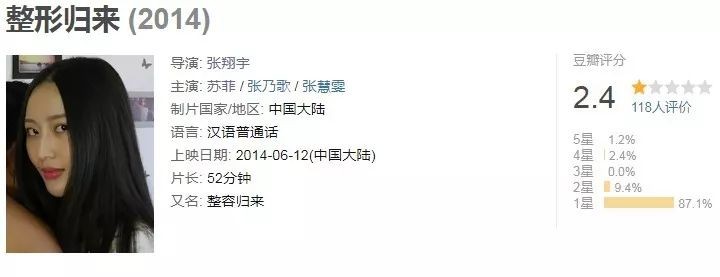女主演更是豆瓣上唯一一个所有作品均为3分以下的神秘巨星。