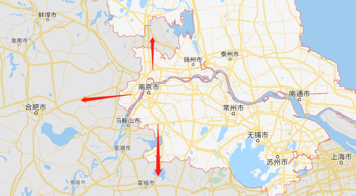 南京和安徽不仅曾经是一家人,从地理位置上看,南京离安徽更近。南京位于江苏省的西南角,南面、西面和北面这三个方向都是安徽省的城市。