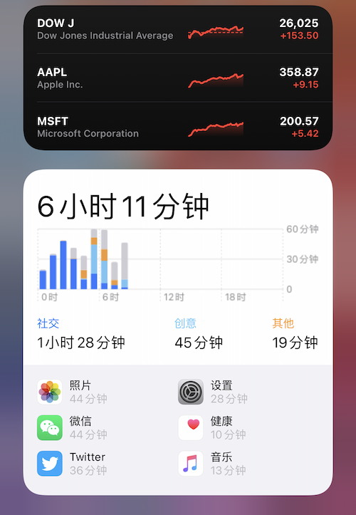 21.股票、屏幕使用时间和快捷指令等小部件,有了新的设计样式。