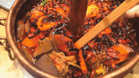 吃卤菜,要搭配卤汁才好吃,在里边加入一些香料和中药,把肉、豆制品、青菜、海鲜、菌菇类等菜品在锅底中煮熟后加入汤汁,发现味道非常变得好。
