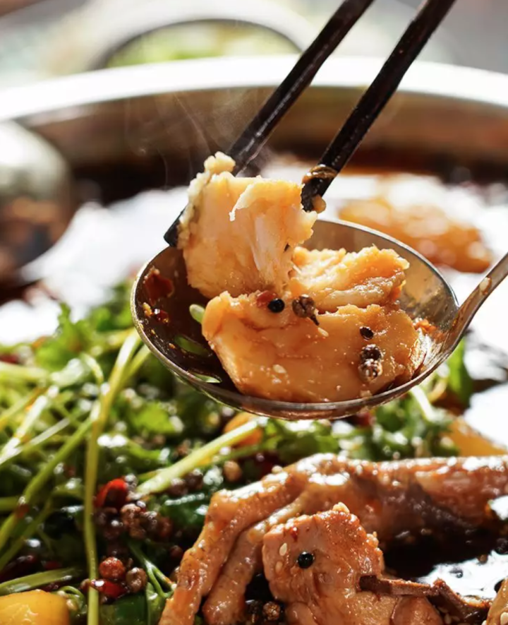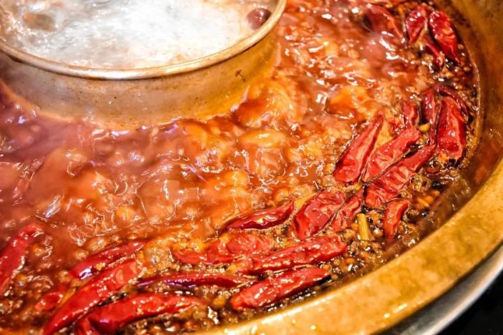 你可以一脚踏入川渝,见识食材在热辣的油汤里翻滚。