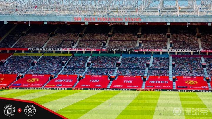 曼联坐镇主场迎战谢菲尔德联,为了给没有观众的球场营造一些气氛,老特拉福德球场也在看台上使用了“假观众”,不过给人的观感似乎比较一般。