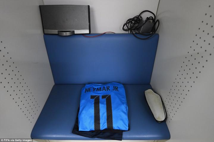 在更衣室中间,摆放了4张治疗床,其中一张上放了球员们要更换的衣服。每位球员的隔间内都配有真皮座椅、衣架和储物柜,球鞋也都摆得整齐有序。