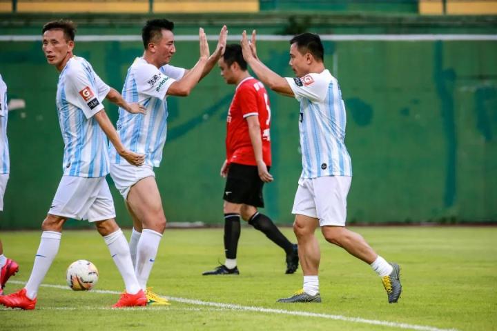 昨日下午,越秀山体育场气温很高,但上场的球员都非常认真。王略、赵铭、李喆、李灵威、刘成、许博和文超,都曾在这块场地流下他们的汗水,留下他们的回忆。功勋们看着年轻的“黄培钊们”奔跑的身影,看着年轻一代突破他们的防线,从他们脚下断球,在他们面前射门得分……