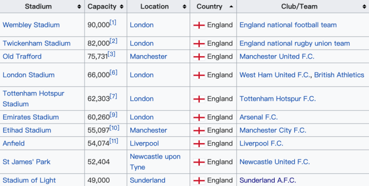 依照容纳人数从高至底,英格兰十大球场排名。安菲尔德位列第八名