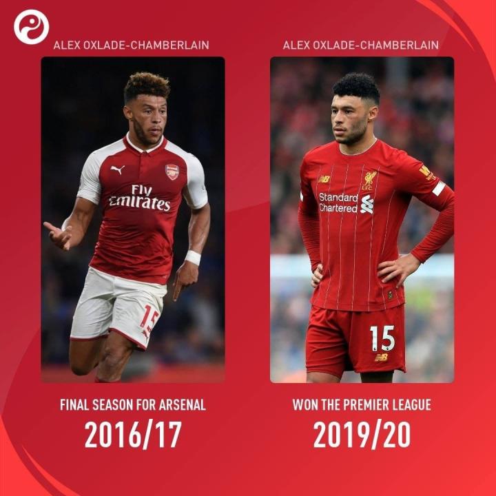 06年后,有7名球员离开枪手后夺英超冠军,张伯伦是最近一位