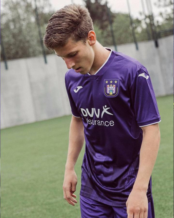 安德莱赫特全新主场球衣仍旧以俱乐部标志性的紫色形象出现在人们面前,以明暗呈现的底纹与带有白色条纹装饰的罗纹V领让这件主场战袍充满古典之美。球衣正面加入的安德莱赫特市天际线图案以及领口的俱乐部成立年份等细节让人们更好地了解这家比利时豪门球队。