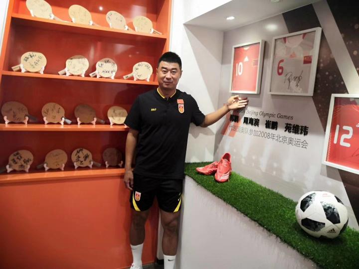 第二天,鲁能足校文化馆在原有的荣誉室基础上扩建完成,韩鹏应邀成为文化馆建成后的第一位客人。望着自己球员时代的大幅喷绘写真以及在北京奥运会赛场上穿过的球衣、球鞋,韩鹏也是感慨万千。走出文化馆,站在鲁能青训建校十周年时和王永珀等队友一起为母校捐赠的迎客松前,韩鹏留下了殷切的祝福:“十年树木,百年树人。希望足校未来能为鲁能足球、为中国足球培养更多人才。”