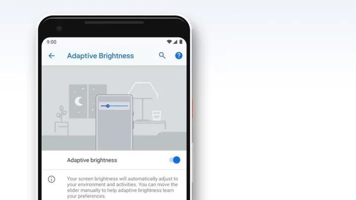 其实 Google 在 Android 9 时期 Google 就引入了一项名为 Adaptive Brightness 的功能,中文是「自动调节亮度」。对这个功能 Google 是这么解释的: