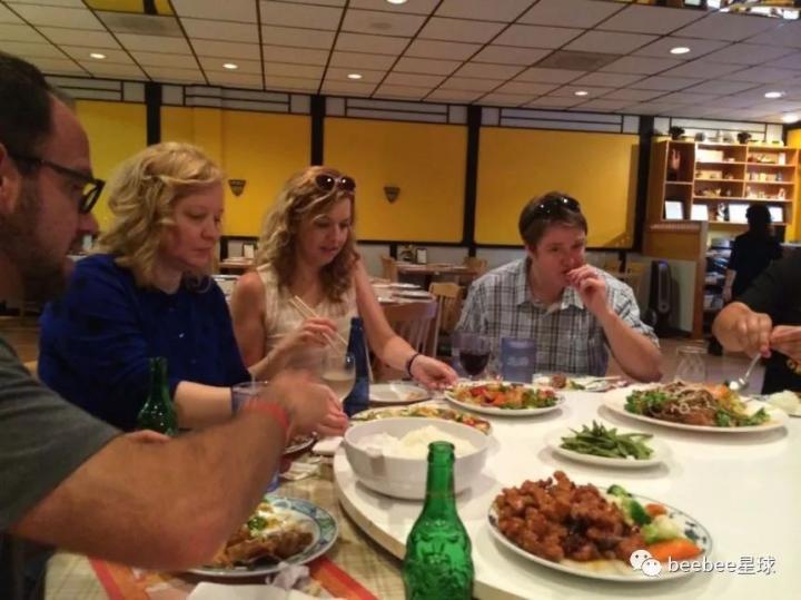 假期的饭局让来自欧美的游客在我国结下友谊。或许在未来的日子里,头顶青天的汉克还能想起对桌的凯丽。